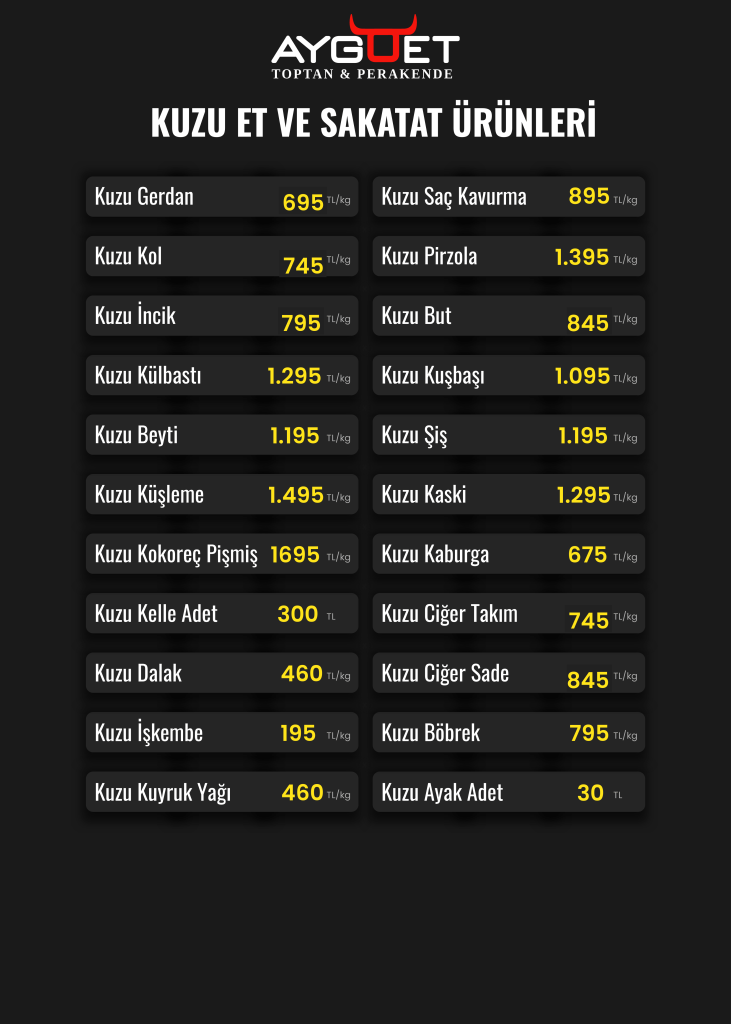 AYGOET olarak, bireysel ve kurumsal müşterilerimize günlük taze kesim, güvenilir hizmet ve uygun fiyat avantajı sunuyoruz.